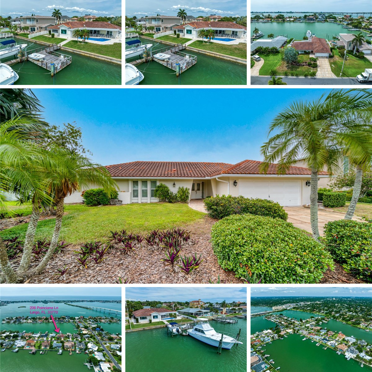 Located in the highly desirable neighborhood of Harbor Bluffs, this lovely home is filled with natural light from the walls of sliders throughout that maximize the resort-style pool and water views. The spacious and updated kitchen opens to the family room and has beautiful custom cabinets, granite counters, stainless appliances, a huge breakfast bar and sliders to the pool making entertaining both easy and enjoyable. The split floorplan features a bedroom with a Murphy bed and ensuite off of the kitchen, as well as a huge laundry room with sink and storage. A second bedroom was converted into a dressing room and the large primary suite has sliders to the outdoor patio and pool as well as a beautiful ensuite with granite counters and walk-in shower. The pool has been completely remodeled and is all concrete with a gorgeous Travertine deck just waiting for you to enjoy or jump on your boat for a great day on the water. Conveniently located close to shopping, fine dining, two airports and famous sparkling beaches.